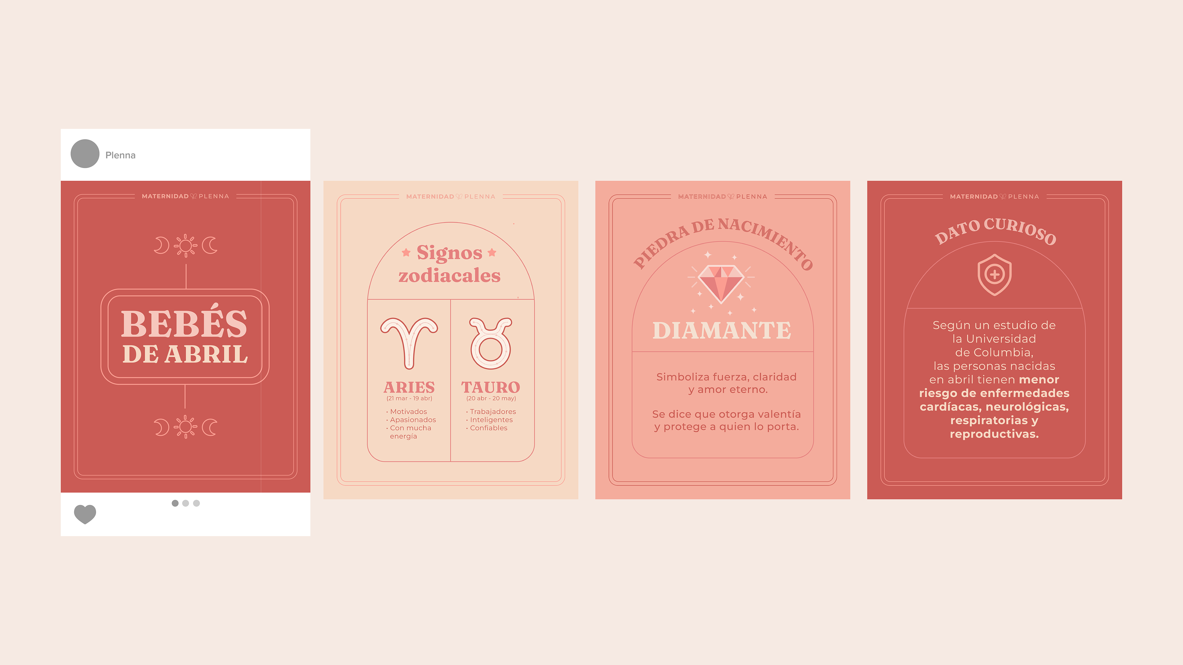 Dirección de arte y sistema visual para Instagram de maternidad Plenna.